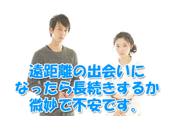 遠距離の出会いになったら長続きするか微妙で不安です。